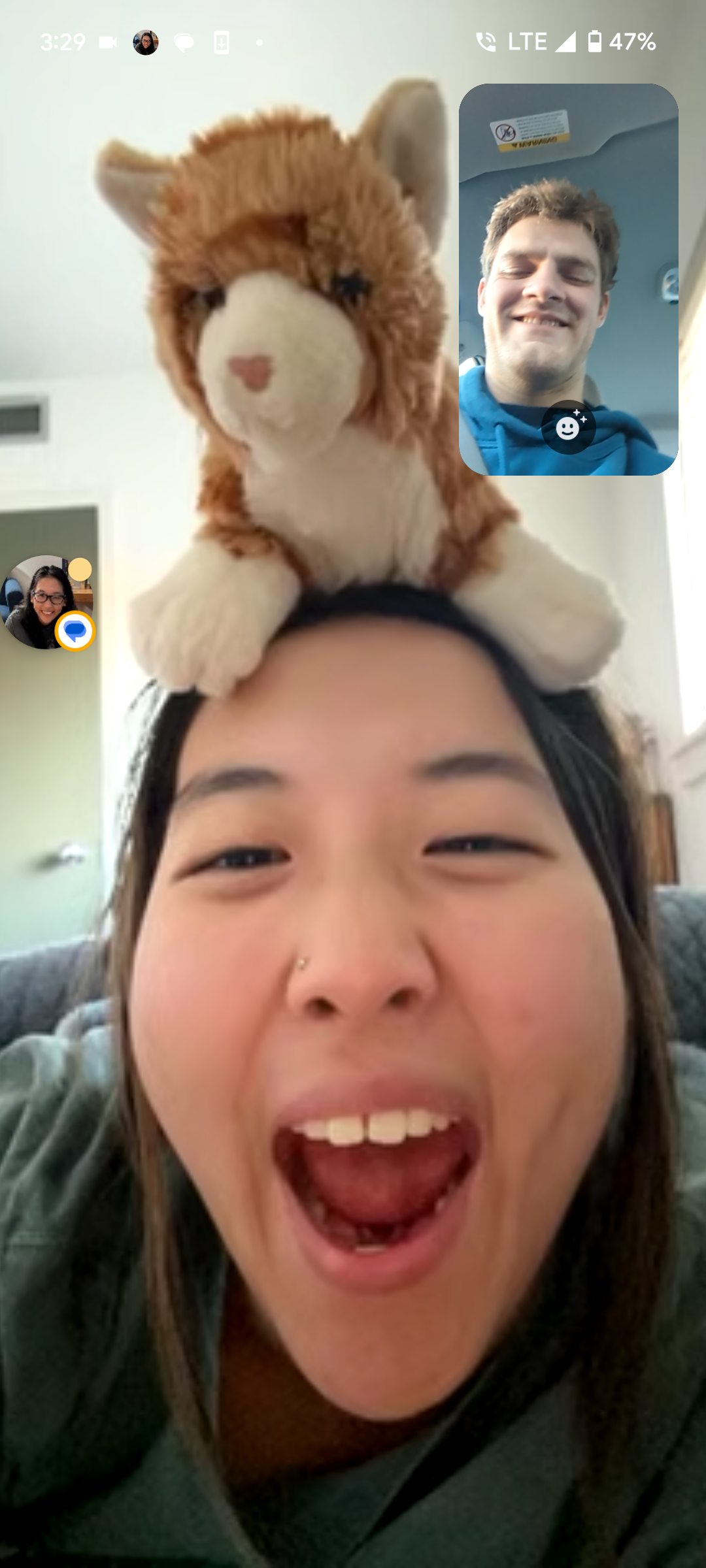 Here you will find many of my favorite cathats. This is a tradition started by Liz when she started putting the stuffed cat Tabby I gave her on top of her head. This simple act filled me with joy. Now without further ado, please enjoy the many faces of cathat!